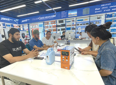 最近,埃馬紐埃爾又開始關注新能源產品?!翱溌∫恍┑胤酱嬖陔娏Χ倘薄⒐╇姴环€(wěn)的問題,很多當?shù)厝讼M夷茉谥袊业胶线m的產品?!睘榇?,他把目標瞄準了義烏國際商貿城的新能源產品市場,尋找到一些適合喀麥隆的光伏設備?!爸袊男履茉串a品性能可靠、性價比高,產品品類覆蓋領域廣泛。”埃馬紐埃爾表示,大到醫(yī)療機構,小到禽畜養(yǎng)殖場,中國光伏設備供應的電力有助于滿足當?shù)孛癖娚a生活的用電需求。