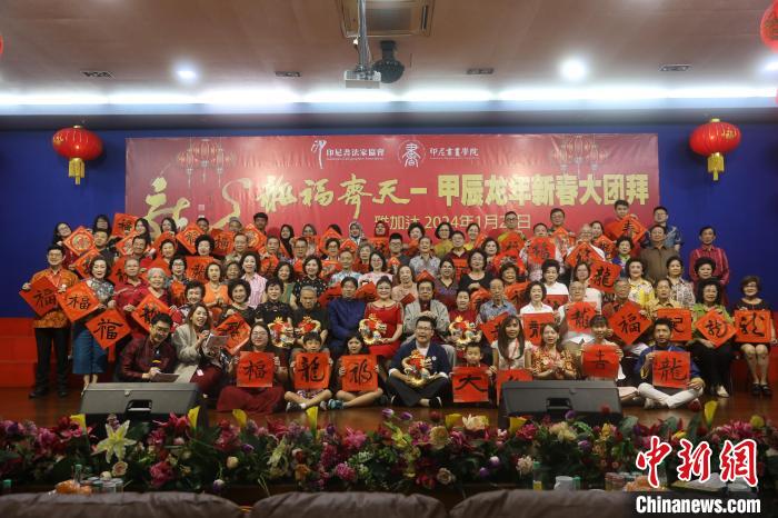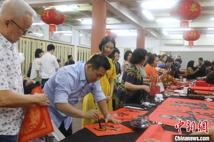 當(dāng)?shù)貢r(shí)間28日上午,這些書法愛好者齊聚印尼書畫學(xué)院,參加“‘龍’福齊天——甲辰龍年新春大團(tuán)拜”活動(dòng)?;顒?dòng)由印尼書法家協(xié)會(huì)和印尼書畫學(xué)院聯(lián)合舉辦。