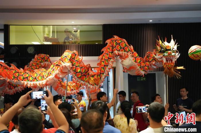 圖為聯(lián)歡會(huì)現(xiàn)場(chǎng)的舞龍表演。張興龍 攝