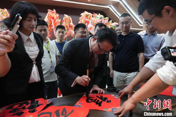 圖為中國駐菲律賓大使黃溪連在現(xiàn)場(chǎng)書寫福字。張興龍 攝