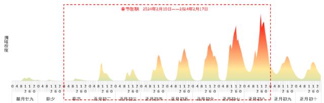 春節(jié)假期公路網(wǎng)流量將呈現(xiàn)“前低后高”的特征,除夕、初一路網(wǎng)流量達到假期低谷,正月初二起,路網(wǎng)流量逐步回升,正月初八集中返程,出現(xiàn)春節(jié)期間最高峰。春節(jié)期間出程與節(jié)日后期返程的潮汐特征明顯,9-12時和14-19時為易發(fā)生擁堵時段。