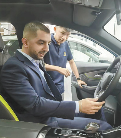 埃及首都開羅,熱鬧繁華的穆罕迪森區(qū),阿拉伯國(guó)家聯(lián)盟大街上車水馬龍。走進(jìn)一家汽車展銷店,一眾知名品牌汽車中,來(lái)自中國(guó)的新能源汽車格外引人注目。