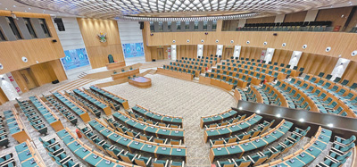 圖為新議會大廈內(nèi)會議廳全景。