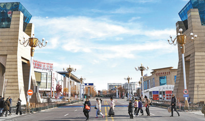 在新疆自貿(mào)試驗區(qū)霍爾果斯片區(qū),中哈霍爾果斯國際邊境合作中心(以下簡稱“合作中心”)熙熙攘攘,熱鬧非凡。合作中心橫跨中國和哈薩克斯坦兩國邊境,總面積5.6平方公里,中哈兩國公民和第三國公民可實現(xiàn)30天免簽跨境出入,面對面進行商貿(mào)洽談、商品交易和旅游購物。合作中心的中哈連接通道,“一步跨兩國”的特殊位置成為游客爭相拍照的打卡點。