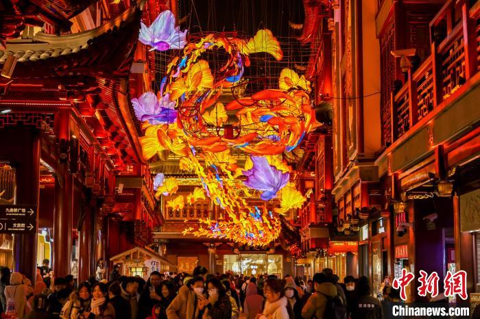 上海豫園商城凝暉路上的“一夜魚龍舞”主題燈組。(復星國際供圖)