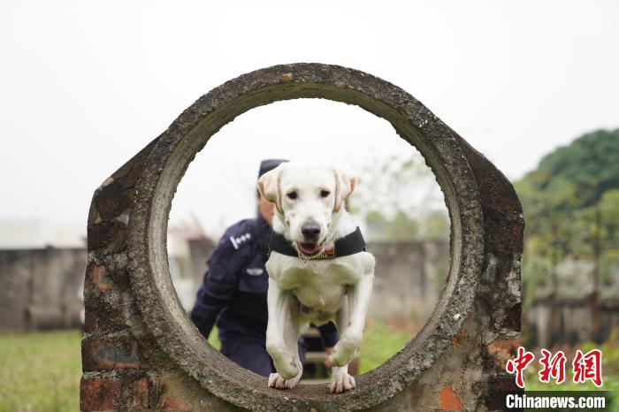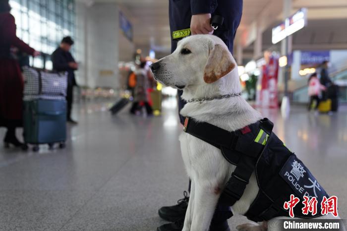 中新網(wǎng)南寧2月5日電 題:“見習(xí)”警犬“斯諾”的首個春運:抵御美食誘惑方“過關(guān)”