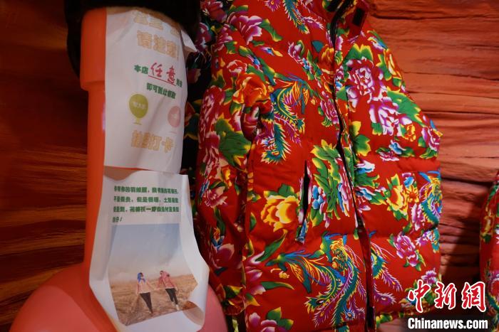 濟(jì)南市芙蓉街一家商店任意消費(fèi)即可選擇穿花棉襖或軍大衣拍照打卡。王采怡 攝