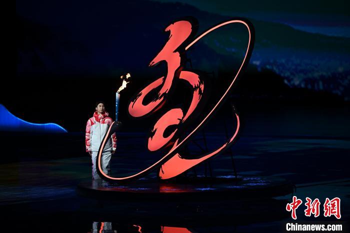 2月17日,第十四屆全國冬季運動會開幕式在內蒙古呼倫貝爾市海拉爾區(qū)內蒙古冰上運動訓練中心舉行。圖為武大靖點燃火炬?!≈行律缬浾?崔楠 攝