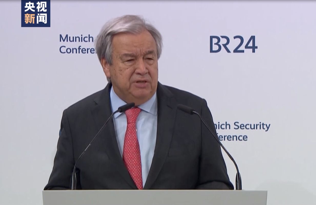 △2月16日,聯(lián)合國(guó)秘書長(zhǎng)古特雷斯在慕安會(huì)上發(fā)表開(kāi)幕致辭(圖由總臺(tái)記者拍攝)