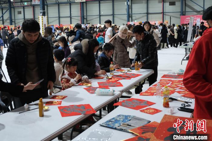 活動現(xiàn)場設(shè)置了百余個特色美食和日用百貨攤位,還設(shè)有寫福字、猜燈謎、做燈籠、漢服體驗等中國傳統(tǒng)文化體驗區(qū)。