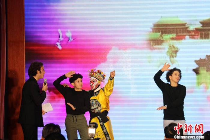 戲曲名段表演、法語經典歌曲串燒……你方唱罷我登場,中法青年在文藝表演中秀出各自的文化風采。由中國戲曲學院學生代表帶來的民族器樂演奏、經典戲曲名段聯唱獲得了臺下的陣陣喝彩。在京劇片段《大鬧天宮》表演結束后,法國少年受邀與孫悟空扮演者互動。
