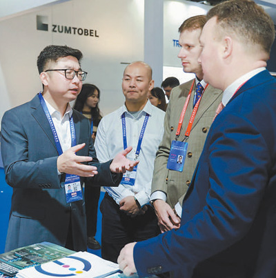 2023年11月,2023金磚國家新工業(yè)革命展在福建廈門舉辦。圖為中外企業(yè)代表在現場交流。