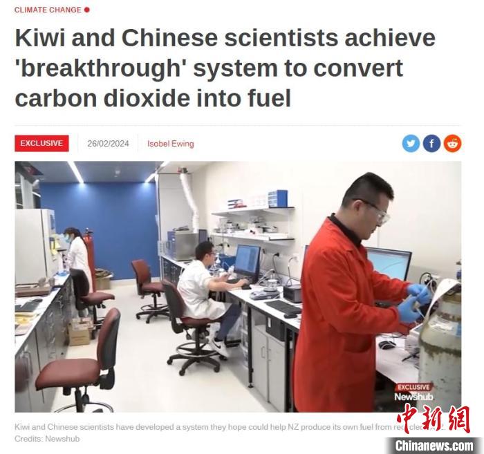 新西蘭和中國科學(xué)家正合作開發(fā)一種將二氧化碳轉(zhuǎn)化為有用物質(zhì)的系統(tǒng)。圖片來源于新西蘭Newshub網(wǎng)站截圖。