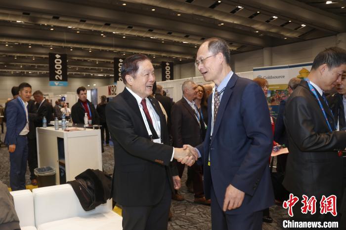 當(dāng)?shù)貢r(shí)間3月3日,2024年加拿大國(guó)際礦業(yè)大會(huì)(PDAC)在多倫多揭幕。圖為加拿大聯(lián)邦參議員胡子修(左)與參展中國(guó)企業(yè)紫金礦業(yè)集團(tuán)股份有限公司副總裁沈紹陽(yáng)交流。中新社記者 余瑞冬 攝