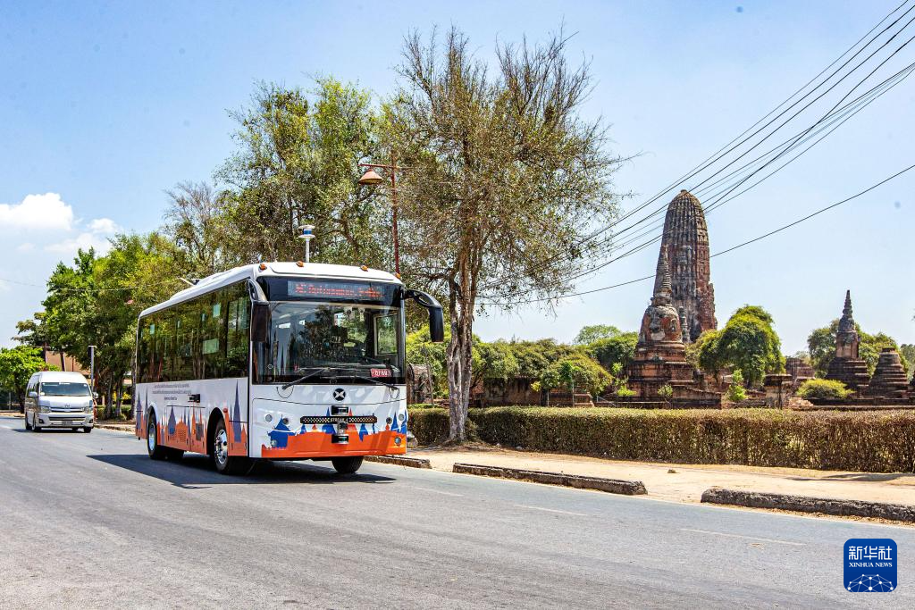 3月5日,5G無人駕駛電動巴士在泰國大城府行駛。新華社記者 王騰 攝
