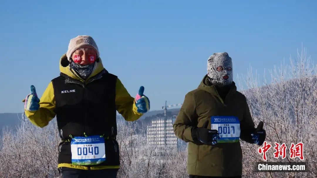 2023年冬,冷極馬拉松在幾近-40℃的低溫中激情開(kāi)跑。 王鄭胤 攝