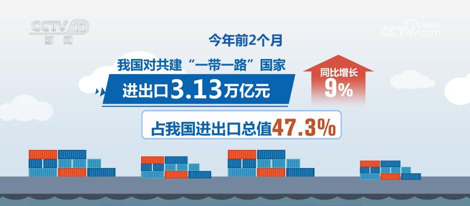 海關統(tǒng)計數(shù)據(jù)顯示,今年前2個月,我國對共建“一帶一路”國家進出口3.13萬億元,同比增長9%,占我國進出口總值的47.3%。其中,對東盟進出口9932.4億元,增長8.1%;對中亞五國進出口950.9億元,增長26%。同期,對RCEP其他成員國進出口1.94萬億元,增長3.5%;對拉美進出口5874.8億元,增長17.3%;對非洲進出口3389.4億元,增長17.3%。