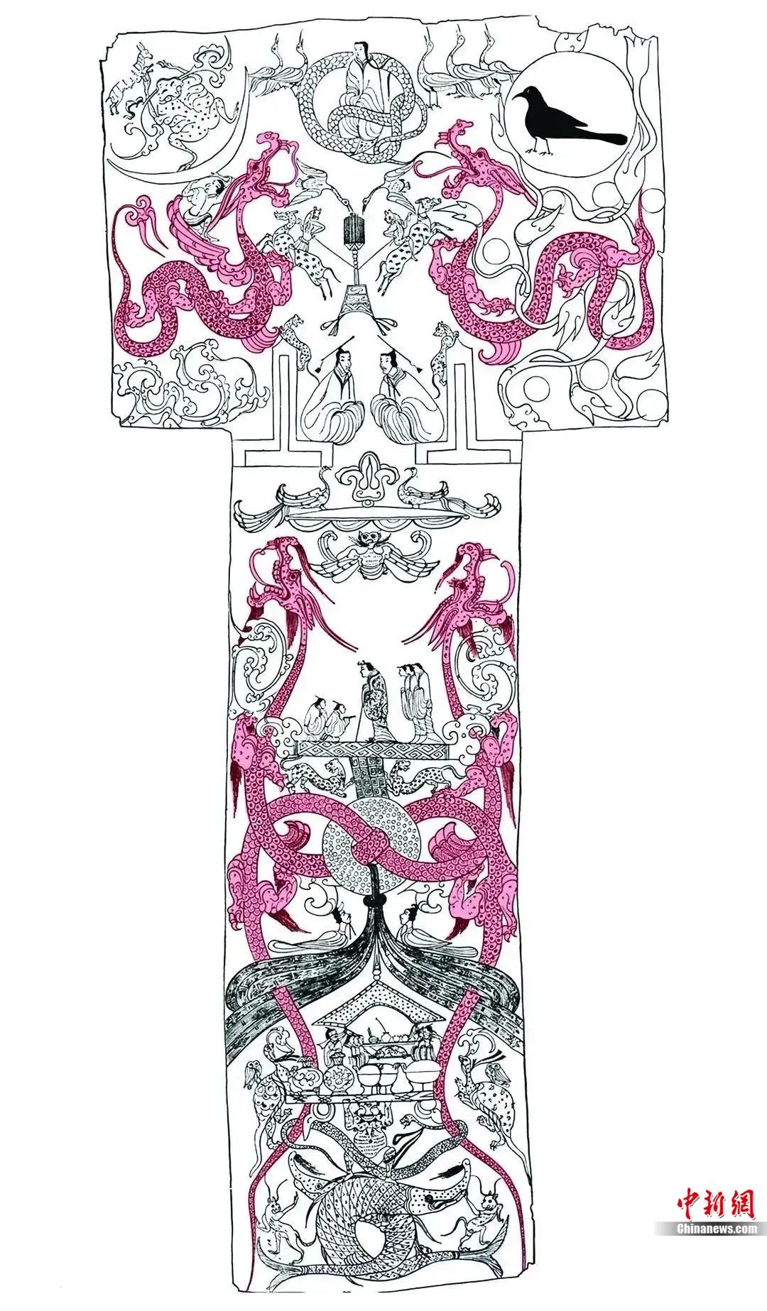 湖南長沙馬王堆漢墓出土T形帛畫線圖。受訪者供圖