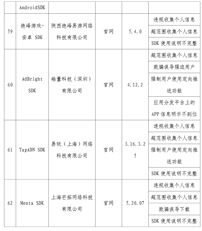 近期,工信部組織第三方檢測(cè)機(jī)構(gòu)對(duì)用戶反映突出的“搖一搖”亂跳轉(zhuǎn)、信息窗口“關(guān)不掉”以及違規(guī)收集使用個(gè)人信息等問題進(jìn)行檢查,共發(fā)現(xiàn)62款A(yù)PP及SDK存在侵害用戶權(quán)益行為。