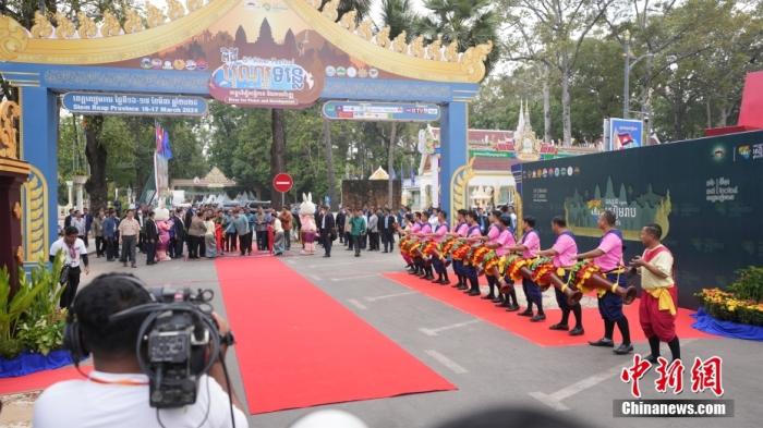 中新社暹粒3月16日電 (楊強(qiáng) 黎海月)當(dāng)?shù)貢r(shí)間3月16日,柬埔寨第八屆河水節(jié)開幕式在世界文化遺產(chǎn)吳哥窟古跡所在地暹粒省舉行。出席當(dāng)天活動(dòng)的柬埔寨首相洪瑪奈表示,歡迎更多中國游客訪問柬埔寨。