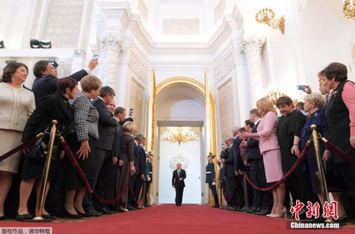 資料圖:當?shù)貢r間2018年5月7日,莫斯科舉辦俄羅斯當選總統(tǒng)普京就職典禮。