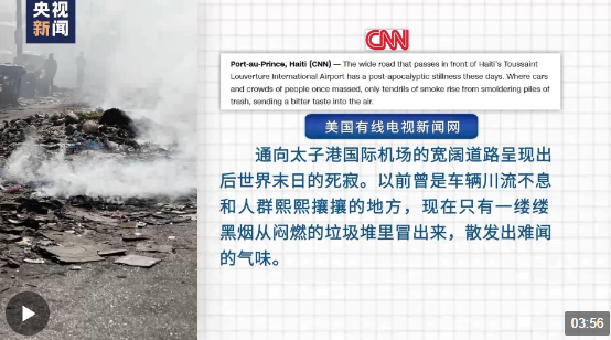 “通向太子港國際機場的寬闊道路呈現(xiàn)出后世界末日的死寂。以前曾是車輛川流不息和人群熙熙攘攘的地方,現(xiàn)在只有一縷縷黑煙從悶燃的垃圾堆里冒出來,散發(fā)出難聞的氣味?!泵绹芯€電視新聞網(wǎng)(CNN)網(wǎng)站18日報道了當前海地的混亂局勢。