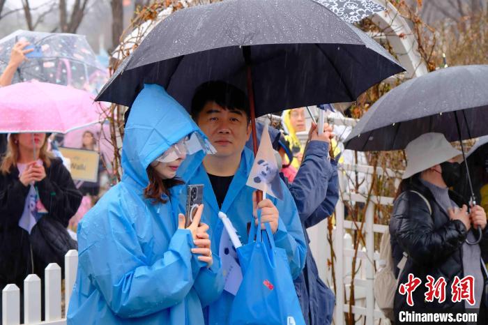 4月3日,民眾冒雨送行旅韓大熊貓“福寶”。 中新社記者 劉旭 攝