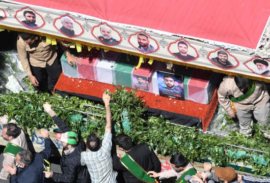 4月5日,在伊朗德黑蘭,人們參加伊朗駐敘使館遭襲事件中喪生的7名伊朗伊斯蘭革命衛(wèi)隊成員的葬禮。新華社記者沙達提攝