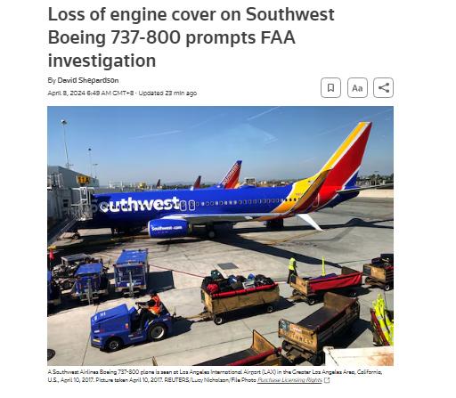 美國西南航空公司表示,維修團(tuán)隊(duì)正在檢查出現(xiàn)事故的飛機(jī)。美國聯(lián)邦航空管理局稱,將對此事進(jìn)行調(diào)查。