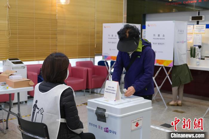 韓國第22屆國會議員選舉4月10日舉行,各政黨候選人將角逐國會300個議席。圖為首爾市廣津區(qū)一處投票站內(nèi),選民將選票投入票箱。中新社記者 劉旭 攝