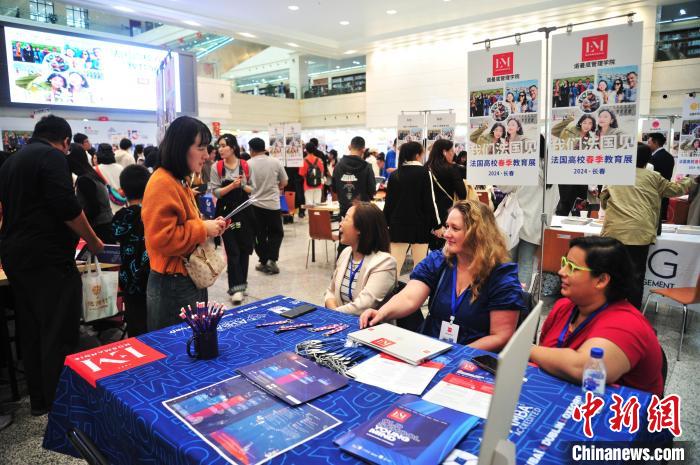 4月14日,“我們法國(guó)見(jiàn)”法國(guó)高校春季教育展——長(zhǎng)春站活動(dòng)舉行,法國(guó)高校代表在推介留學(xué)項(xiàng)目。高龍安 攝