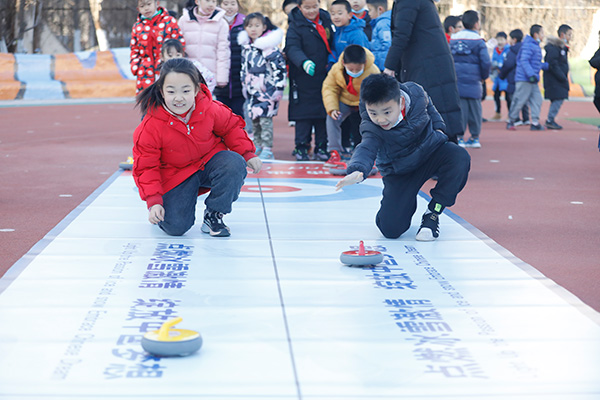 人民網(wǎng)北京12月30日電 (尹星云)12月30日,“筑夢(mèng)冰雪 相約冬奧”——北京朝陽(yáng)區(qū)冰雪進(jìn)校園活動(dòng)在芳草地國(guó)際學(xué)校世紀(jì)小學(xué)舉辦,學(xué)生們?cè)诮叹殕T的指導(dǎo)下,學(xué)習(xí)體驗(yàn)旱地冰壺、冰雪射擊、短道速滑、模擬滑雪體驗(yàn)、翻越雪山、俯式冰橇、冰球運(yùn)球等多項(xiàng)冰雪運(yùn)動(dòng)。在享受項(xiàng)目帶來(lái)的快樂(lè)的同時(shí),感受“更高、更快、更強(qiáng)、更團(tuán)結(jié)”的奧林匹克格言,也為即將舉辦的北京冬奧會(huì)送上自己的祝福。