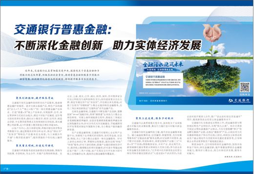 交通銀行普惠金融:不斷深化金融創(chuàng)新 助力實體經(jīng)濟(jì)發(fā)展
