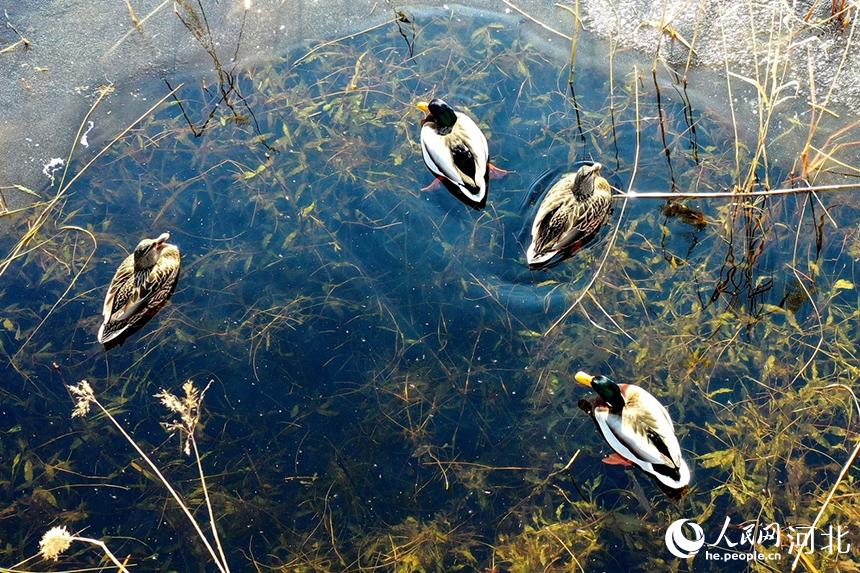 人民網石家莊1月6日電 隆冬時節(jié),走進河北省文安縣趙王新河濕地公園,水面碧波蕩漾,清澈的河水吸引了上千只野鴨在此繁殖棲息。它們時而翩翩起舞、時而將頭潛進水中覓食,嬉戲玩耍,很是怡然自得。