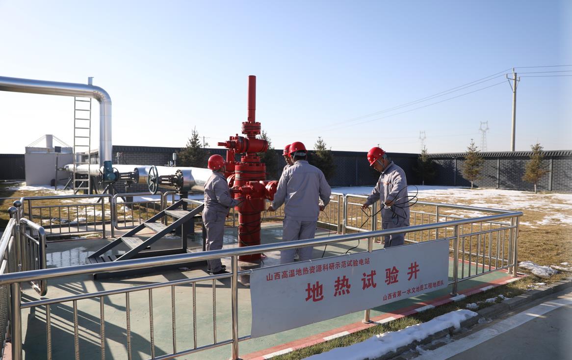 2021年1月,山西高溫地?zé)豳Y源科研示范試驗(yàn)電站的兩臺(tái)機(jī)組發(fā)電成功。試驗(yàn)電站一期占地約50畝,設(shè)計(jì)有勘查井場(chǎng)區(qū)、發(fā)電機(jī)組場(chǎng)區(qū)、水處理區(qū)等。