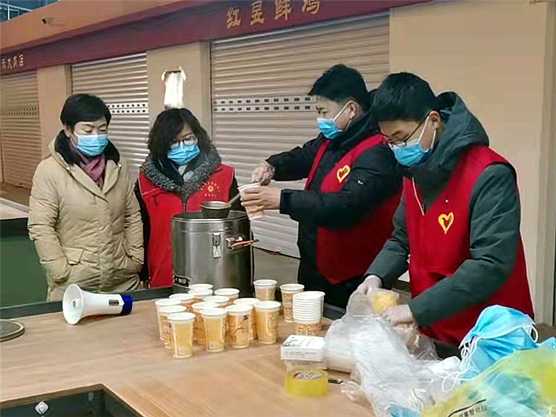 志愿者為核酸檢測工作人員熬制臘八粥。寧河區(qū)供圖