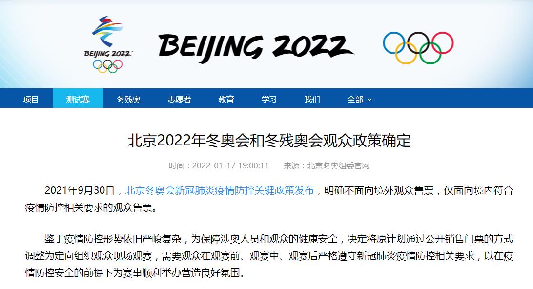 北京2022年冬奧會和冬殘奧會觀眾政策確定