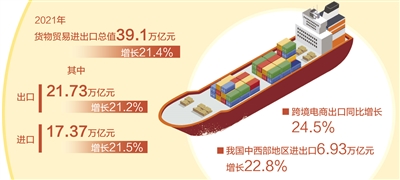 “2021年是黨和國(guó)家歷史上具有里程碑意義的一年。面對(duì)全球新冠肺炎疫情帶來(lái)的嚴(yán)重沖擊,我國(guó)外貿(mào)進(jìn)出口依然展現(xiàn)了強(qiáng)勁的韌性,在困難多、挑戰(zhàn)大的情況下交出了一份亮眼的成績(jī)單?!崩羁恼f(shuō)。