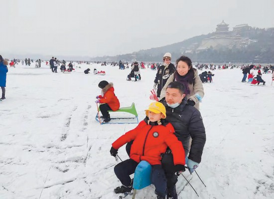 圖為游客在頤和園樂享冰雪運(yùn)動(dòng)。作為第八屆北京市屬公園冰雪游園會(huì)活動(dòng)內(nèi)容之一的頤和園“圓夢冬奧,相約頤和”項(xiàng)目,今年首次設(shè)置了雪上娛樂項(xiàng)目,讓市民不出京城就可親身感受冰雪魅力。 本報(bào)記者 吳鏑攝