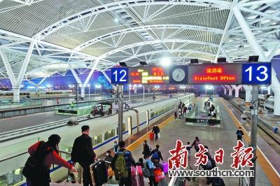 據(jù)廣鐵集團介紹,今年春運期間預(yù)計發(fā)送旅客4650萬人次,同比增加587.2萬人次,同比增長14.5%。春運開始后,客流增長迅速,1月24日,預(yù)計廣東省節(jié)前春運客流達最高峰,發(fā)送旅客132萬人次,同比增加48.3萬人次,增長57.7%。