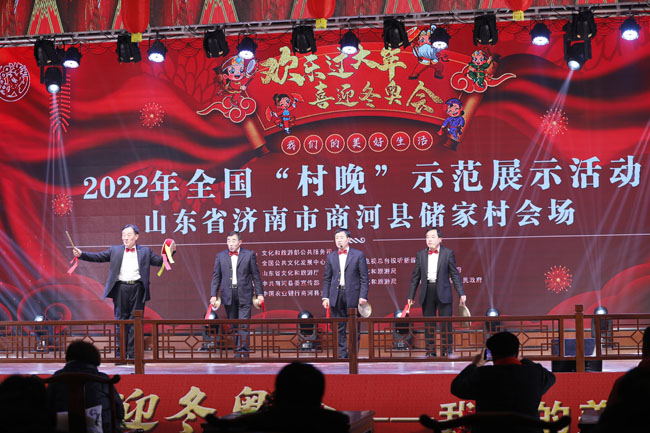 人民網濟南1月27日電 1月23日,是農歷的臘月二十一,一場以“喜迎冬奧會 歡樂過大年”為主題的“村晚”在山省濟南市商河縣儲家村“舉辦”,這是2022年全國“村晚”示范展示點錄制現場之一。