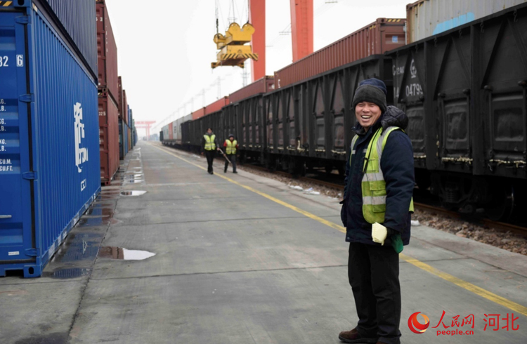 人民網(wǎng)石家莊2月2日電 (祝龍超)“再往前一點(diǎn),右邊一點(diǎn),好的。”2月2日9點(diǎn),在地面作業(yè)人員的配合下,坐在30多米龍門吊駕駛室的滑恒旭穩(wěn)穩(wěn)地操作著龍門吊車將一個(gè)20多噸的集裝箱放到了貨運(yùn)專列上。