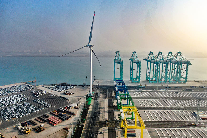 全球首個(gè)“智慧零碳”碼頭智慧綠色能源系統(tǒng)順利并網(wǎng)發(fā)電。樂坤攝