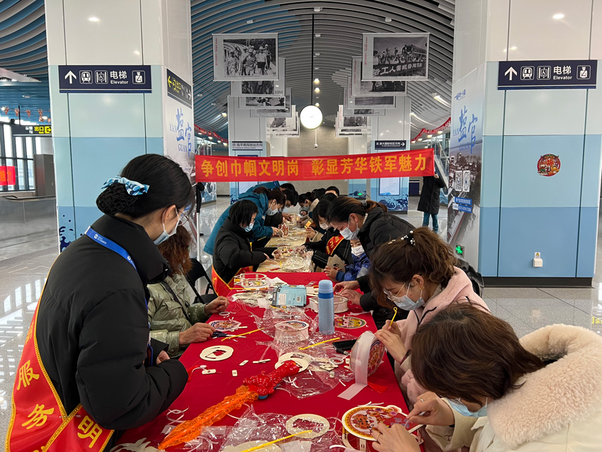 鬧元宵、扎虎燈、猜燈謎……節(jié)日里的杭海城際鐵路各車站熱鬧非凡。在張燈結(jié)彩的海寧海昌路站,工作人員熱情邀請(qǐng)乘客參加猜燈謎活動(dòng)?;顒?dòng)中,乘客們有的凝眉思考,有的積極討論,歡歡喜喜猜著燈謎,為節(jié)日里增添了一份歡樂和喜悅。海寧鹽官站又是另一番歡樂的場(chǎng)景,工作人員親自動(dòng)手,制作出一盞盞漂亮的虎燈,乘客們紛紛圍攏過來駐足觀看,希望在新的一年里贏得“好兆頭”,現(xiàn)場(chǎng)一片其樂融融,歡聲笑語。