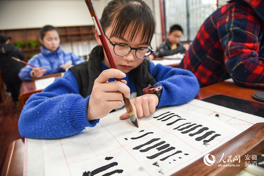 “小小書法家”正在認真練習書寫。人民網(wǎng) 李希蒙攝