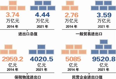水深則魚悅,城強則賈興。從2014年至今,京津冀地區(qū)進出口規(guī)模連創(chuàng)新高,2019年首次超過4萬億元,2021年更是達到4.44萬億元。在此基礎上,搶抓RCEP帶來的政策紅利,京津冀外貿(mào)出口規(guī)模有望再上新臺階。(記者 張兆瑞)