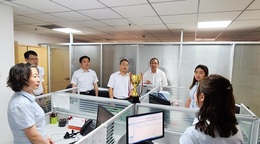 人民銀行消保局副局長(zhǎng)馬紹剛在太原中心支行視察12363熱線工作。