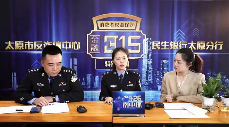 人民網(wǎng)太原3月15日電 為進(jìn)一步增強(qiáng)人民群眾防范電信網(wǎng)絡(luò)詐騙意識(shí),發(fā)揮公安機(jī)關(guān)和金融行業(yè)的宣傳合力,3月15日下午,太原市反詐騙中心與民生銀行太原分行聯(lián)合開(kāi)展了“3·15”專題防范電信網(wǎng)絡(luò)詐騙直播活動(dòng),為廣大群眾帶來(lái)了滿滿的防詐騙“干貨”。