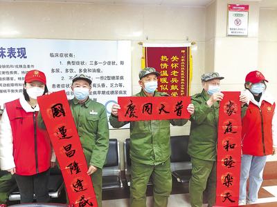 石家莊市正定縣“常山老兵”退役軍人志愿服務隊到市榮軍優(yōu)撫醫(yī)院開展“賀新春、獻愛心、送祝?!敝驹阜栈顒?。 河北省退役軍人事務廳供圖