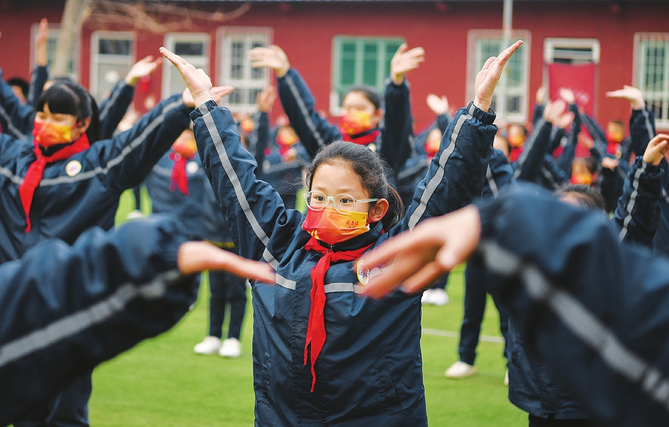 3月24日,臨汾市興國實(shí)驗(yàn)小學(xué),師生們在課間跳律動減壓操。連日來,該校結(jié)合閉環(huán)管理,為全校師生量身編排了律動減壓操和手舞操,使學(xué)生快樂學(xué)習(xí)、健康生活。(閆銳鵬攝)